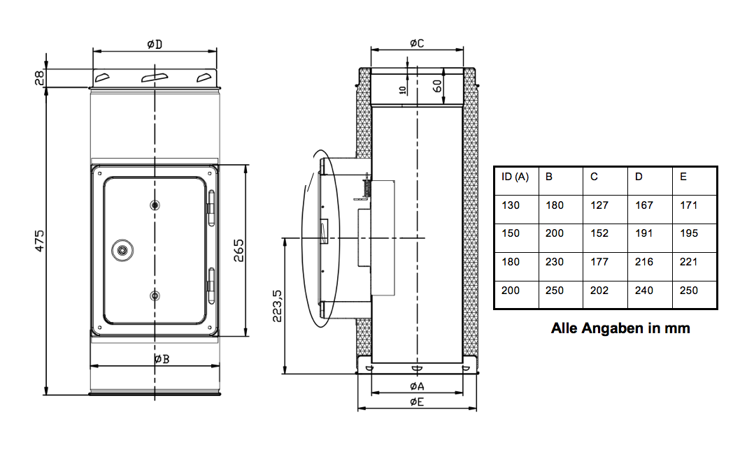 L’élément de nettoyage double paroi avec porte de ramonage permet au ramoneur au moment venu de nettoyer aisément votre conduit de cheminée. Grâce à la porte de nettoyage intégré vous pouvez vérifier à tout moment s’il y a de la salissure dans votre conduit de cheminée. L’élément de nettoyage équipé du système Twist-Lock est à visser entre le support de base avec condensation de l’eau et le té, en y rajoutant un collier de jonction.